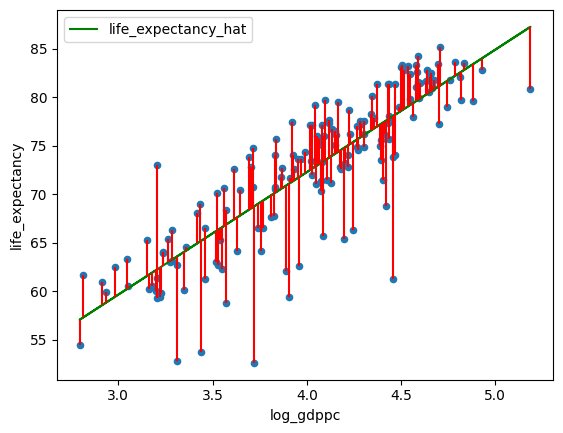 where represents the error between the line of best fit and the sample values for given .